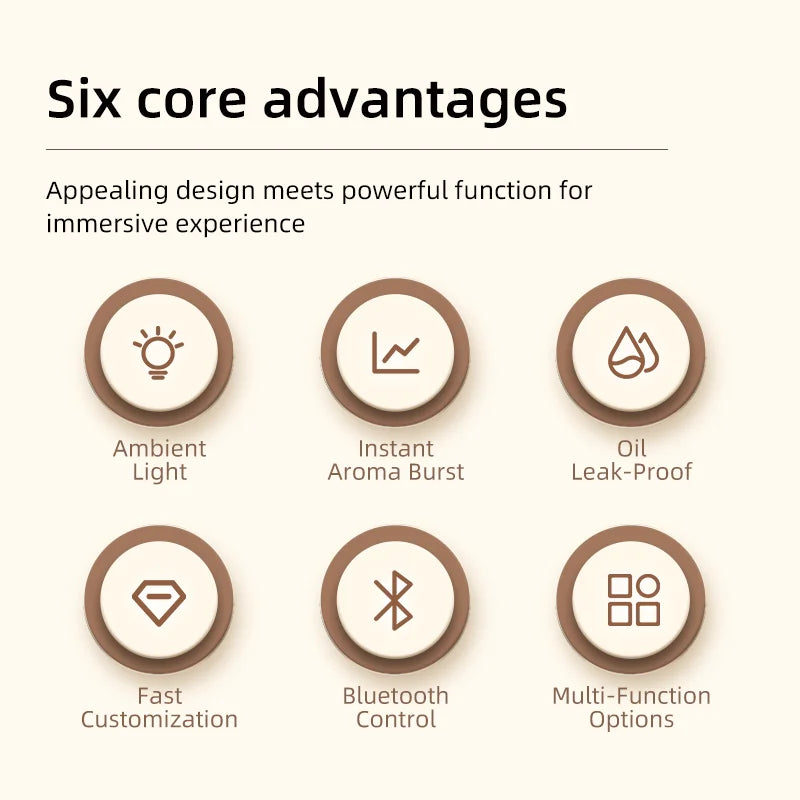 Ce diffuseur intelligent vous permet de contrôler facilement la diffusion de vos arômes préférés via une application dédiée. Sa couverture généreuse en fait un allié idéal pour parfumer de grands espaces. La veilleuse intégrée ajoute une atmosphère chaleureuse et relaxante, idéale pour vos moments de détente comme pour accueillir vos invités.